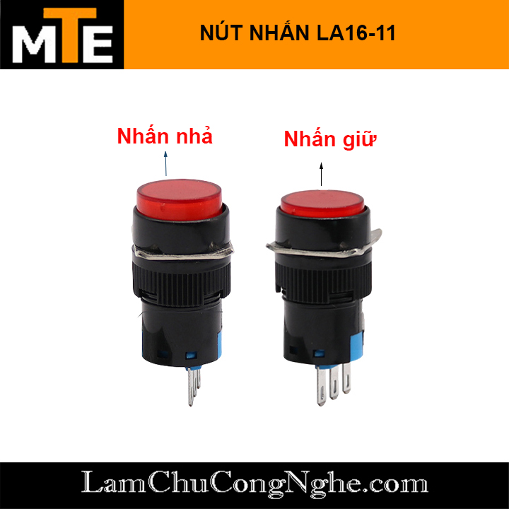Công tắc nút nhấn LA16-11 16mm 3 chân tròn