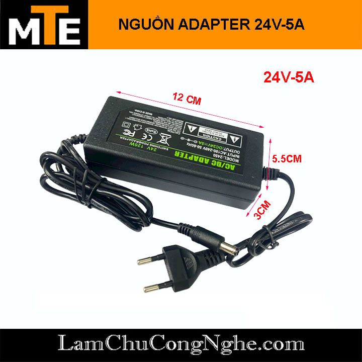 - Nguồn Adapter 24V 5A là một loại nguồn xung, có thể chuyển đổi từ 242VAC sang 24VDC.
