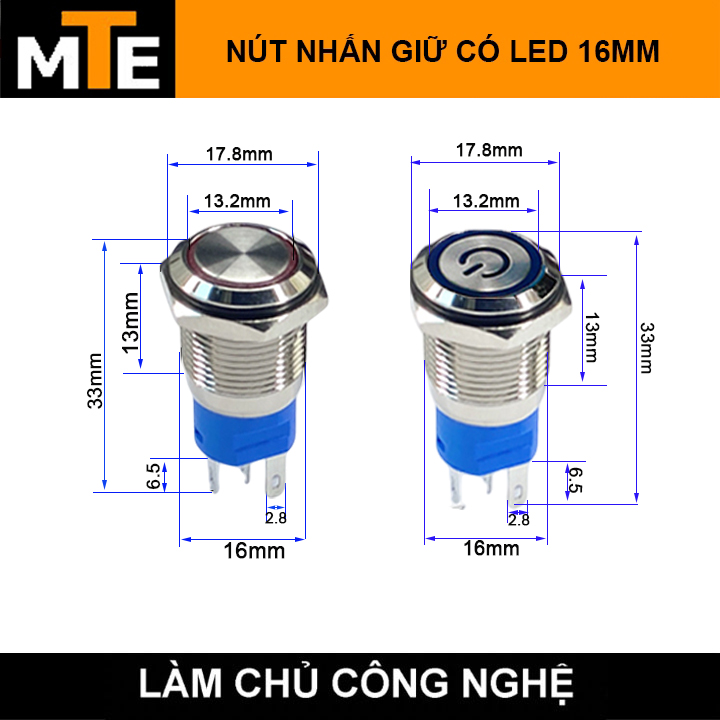 Nút nhấn 16MM giữ trạng thái ON/OFF 220V có led chống nước