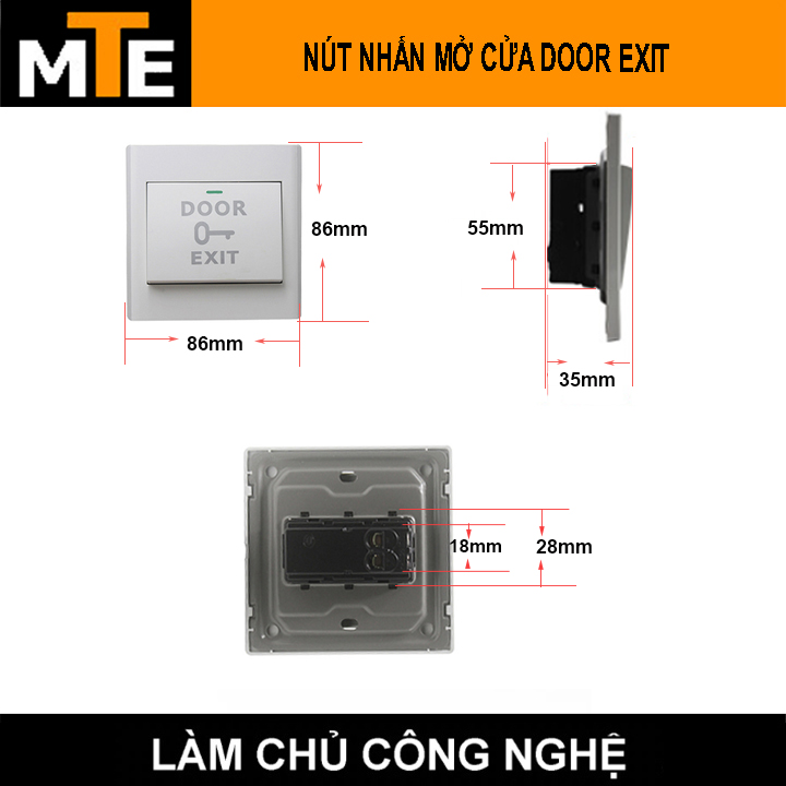 - Nút nhấn mở cửa door exit thích hợp sử dụng cho mọi loại cửa: cửa kính, cửa gỗ, cửa chống cháy, phù hợp cho hệ thống kiểm soát ra vào, kiểm soát cửa.